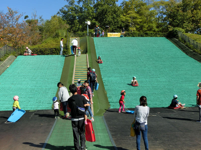 竹取公園で芝滑り&遊具&ロング滑り台で遊んできたよ