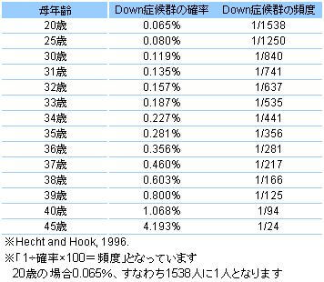 高齢出産にはリスクが伴います。加齢による染色体異常(ダウン症)の確率と頸部浮腫(NT)厚みによる危険度について。 -